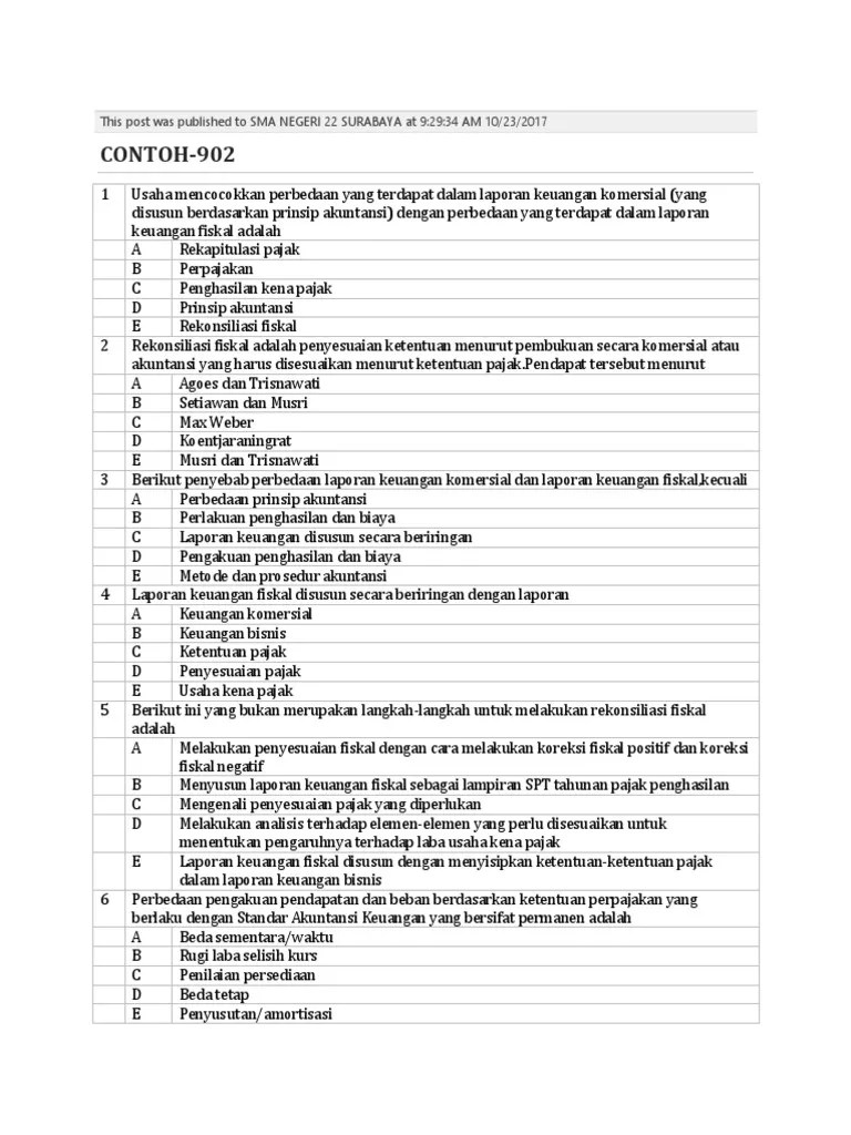 Rafi bergerak dalam bisnis perdagangan kain batik yang merupakan wajib pajak badan yang berdomisili . Contoh soal dan jawaban rekonsiliasi fiskal kasus 1 pt. Rekonsiliasi fiskal merupakan suara cara untuk menyesuaikan laporan laba rugi secara komersial menjadi sesuai dengan peraturan perpajakan. Contoh soal rekonsiliasi bank jurnal kas dan bank. Hipotesis yang diangkat yaitu —rekonsiliasi fiskal pt.